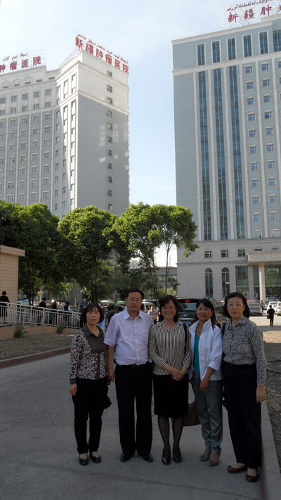 近日,我院副院长刘原教授带队一行4人赴新疆医科大学附属肿瘤医院进行工作交流与援疆干部交接。新疆医科大学附属肿瘤医院热情接待并安排了座谈与参观,该院党委书记白靖平教授和相关部门负责人参加座谈会,双方在友好热烈的气氛中进行了交流,并对今后进一步开展灵活多样的柔性援疆工作进行了商谈。我院急诊科主任李丽君教授作专题讲座,呼吸内科董西林教授和急诊科赵晓静副教授完成了工作交接。