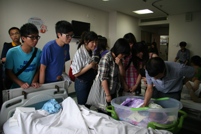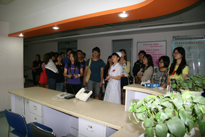 座谈会结束后,科研中心李可主任全程英文带领访问团对科研实验中心进行了全面的实地参观,随后在08级同学韩田田和葛鑫的引导下,访问团参观了我院妇产科病区,在赵艳护士长的介绍中进一步了解科室的病区设置、先进设备、特色环境及近年来在医疗、教学和科研方便取得的成绩等,其中我院的新生儿游泳、抚触项目和母婴同室引起了访问团极大的兴趣。