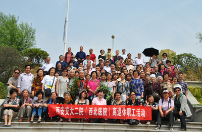 5月18日早8点,我院南院操场上一片欢腾,150多人熙熙攘攘、谈笑风生,他们是我院离退休职工,正在做郊游出行前的准备。