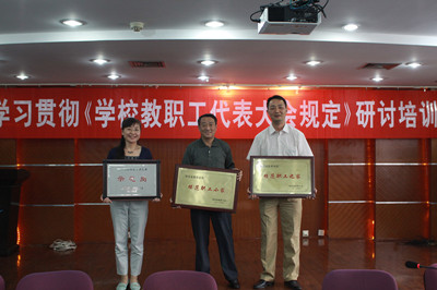 5月24日下午,在西安交通大学“学习贯彻《学校教职工代表大会规定》研讨培训会”上,副校长、校工会主席李伟为全校获得陕西省教育系统模范职工之家、模范职工小家、优秀工会工作者、优秀工会积极分子的单位及个人颁奖。