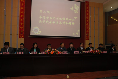 3月15日下午,我院党委在多功能厅召开了院第三次代表大会二次大会暨选举校十二次党代会代表大会,校组织部主管滕晶、全体院党委委员以及145名党代表参加会议。会议由党委副书记巩守平主持。