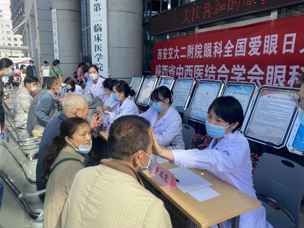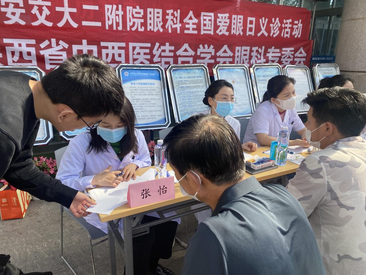 2023年6月6日是全国第28个“爱眼日”,今年的主题是“关注普遍的眼健康”,着重关注儿童青少年、老年人两个重点人群,聚焦近视等屈光不正、白内障、眼底病、青光眼、角膜盲等重点眼病,大力宣传全年龄段全生命周期眼健康的重要意义。2023年6月3日上午08:30—10:30,我院眼科党支部组织医护团队联合陕西省中西医结合学会眼科专委会一起在主院区门诊楼前举办以“关注普遍的眼健康”为主题的“爱眼日”义诊健康宣教活动。