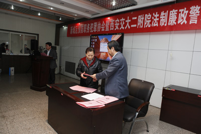巩书记最后强调说,与会人员对高墙内外的切身感受;服刑人员现身说法之心灵的回归与呼唤;法制教育中一件件真实案例对心灵的震撼和触动;现场廉政责任书的签订,所有这些只有一个目的,就是希望每一位同志时刻做到自重、自警、自省,希望大家平安、自由、幸福,只有这样我们的学科才能健康发展,我们的事业才能蓬勃向上,我们才能全身心的以高尚的医德和精湛的医术回报社会和患者。