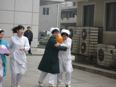 门诊部90%以上都是女同志,是一只较地道的“娘子军”队伍。“三八妇”女节将至,为了增强科室凝聚力,通过活动培养科室同事之间的深厚感情,门诊部利用中午午休时间组织大家开展了生动、丰富的小型趣味运动会活动。