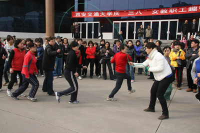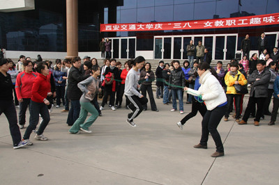 ?3月6日下午,为庆祝第102个国际“三八”妇女节,交大工会女工委员会在思源南广场隆重举办庆“三八”女职工趣味运动会。
