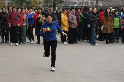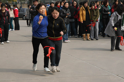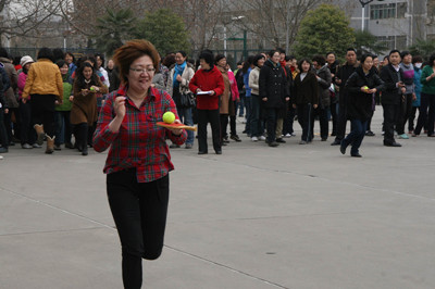校党委常委、副校长李伟首先致辞,他向全校女教职员工表示节日的祝贺,宣布庆“三八”女职工趣味运动会开始。思源广场上气氛浓烈,空气中的丝丝凉意并未减少女教工们的活动热情,学校各学院共有26支代表队近500名女工参加了活动。本次趣味运动会共设三个项目:乒乓球拍托网球迎面接力、两分钟计时跳大绳和双人3足绑腿迎面接力。我院组成由15名职工的代表队,参加了全部比赛项目,最终获得乒乓球拍托网球50米迎面接力第一名、双人3足绑腿50米迎面接力第二名以及两分钟计时跳大绳三等奖,连续多年在学校庆“三八”女职工趣味运动会名列前茅的好成绩,女职工们展现了二院特有的团结拼搏向上的精神风貌和团队精神。