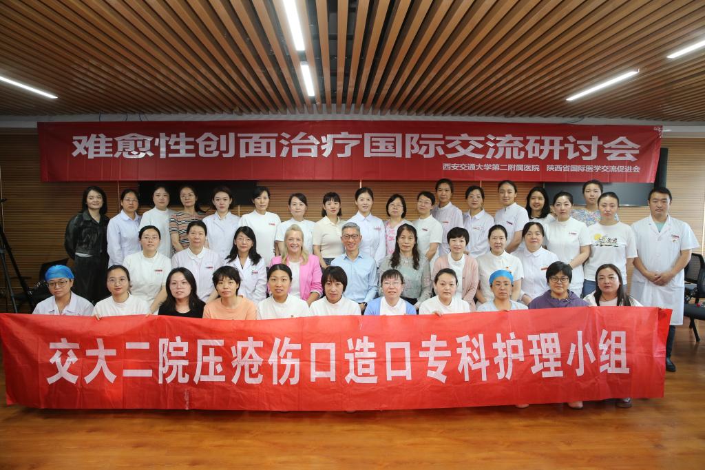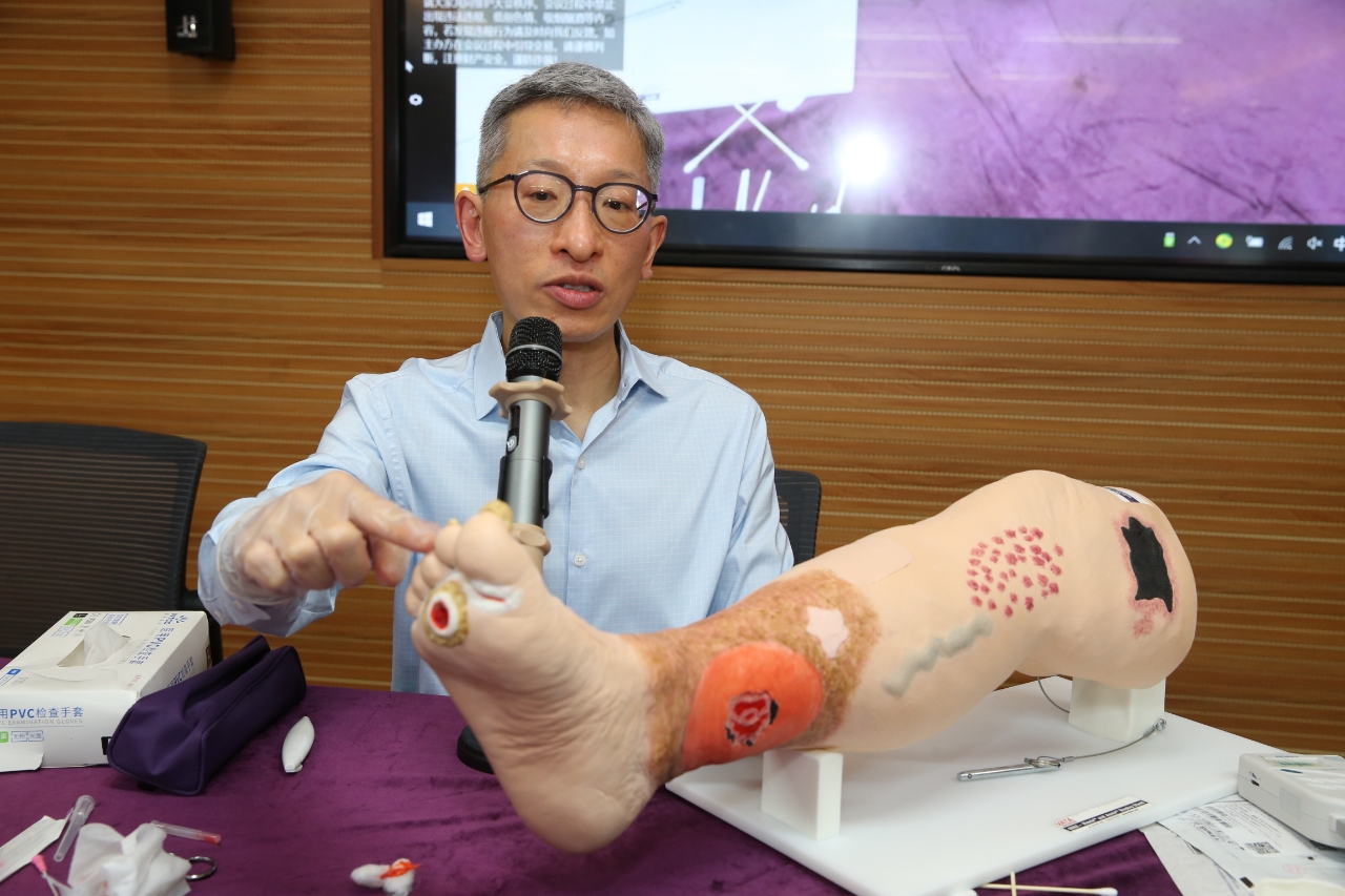 最后专家们参观了门诊换药室,到皮肤科住院部听取了皮肤科近几年关于创面治疗的个案分享,并现场观摩了一例IV期压疮患者的换药,圆满完成了本次学术交流研讨会。Kevin Woo教授和Rachel教授在参观结束后对我院伤口护理工作给予了充分肯定。