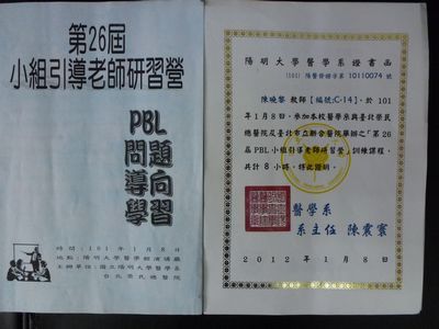 刘原副院长首先代表医院对大家的归来表示欢迎,她讲到台湾的医疗技术和发展模式与国际接轨程度较高,赴台学习不仅可以使我们了解到前沿的医教研水平,更可以使我们开拓视野,发现我们存在的不足,找到提升自己的途径,希望大家能将此行所学知识切实体现到今后的医教研工作中。随后多位赴台学习人员从不同角度向大家介绍了台湾荣民总医院的环境规模、医疗技术、PBL教学、医院管理和人文理念等诸多方面,分享了一些深刻的体会和感受,同时也结合科室和医院的实际情况,从学科设置、护理服务、科研工作等方面提出了许多宝贵的建议,特别对PBL教学法的具体组织和实施方面进行了热烈讨论和交流。学习期间,大家参加了阳明大学与台北荣民总医院举办的“第26届PBL小组引导老师研习营”训练课程,并进行了PBL教学流程的实际演练,获得了担任PBL教学引导老师证书,这将对我院下一步开展PBL教学起到积极作用。