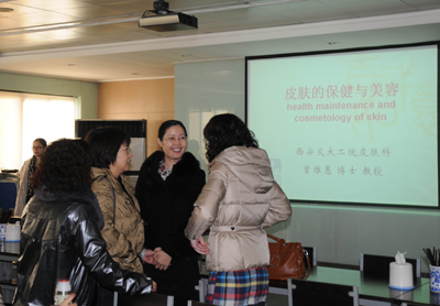 ?12月18日上午,我院皮肤科曾维惠教授应邀到华商报社,为该报华商健康大讲堂演讲皮肤的保健与美容专题知识讲座,并现场答疑解惑,精彩、科学、理性并贴近生活实际的演讲受到听众的欢迎,尤其使到场听讲的爱美女性感觉受益匪浅。