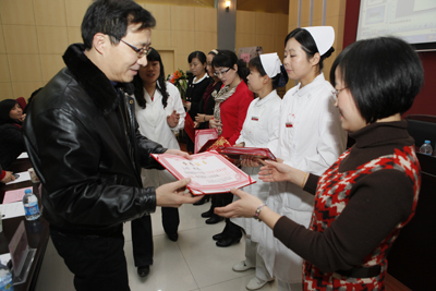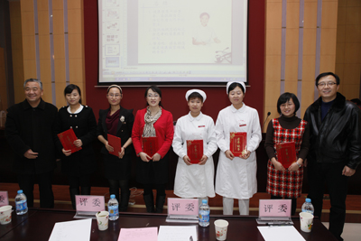 决赛选手们按抽签顺序授课,时间为10分钟。每位选手精心准备,竞赛中发挥出色,各展所长。她们以多媒体课件讲授为主,内容新颖,图文并茂,语言清晰,表达能力强并能灵活运用肢体语言、教学用具等。她们以丰富的专业知识、形式多样、生动流畅的讲解,得到了在场评委及观众的阵阵掌声。经过激烈的角逐,最终泌尿外科张丽获得一等奖,护理部周西、感染科许丽红获得二等奖,神经外科王金娟、重症医学科刘媛媛、内分泌科杨妙妍、中医科王晔、耳鼻喉科吕晖、消化内科刘耕文获得三等奖,其余复赛选手均获得优秀奖。各位领导及嘉宾为获奖选手颁发了获奖证书及奖品,并颁发了优秀组织奖。