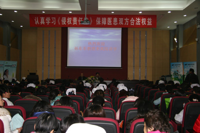 首先,贺西京院长代表医院对孙教授的莅临表示热烈的欢迎及衷心的感谢,要求医务人员一定要认真学习领会《侵权责任法》中的有关条款,明确应尽的责任和义务,切实保护好医患双双的合法权益,使我院的各项医疗工作健康发展。