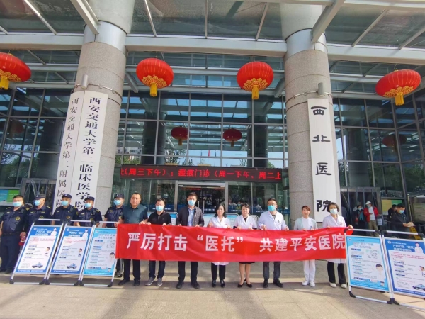 工作人员在医院综合大楼、皮肤病院、儿童病院门诊等人员密集和醒目位置放置普及防范“医托”知识的展架、张贴横幅警示标语、向患者发放防范“医托”的宣传单1000余份,对患者普及防范“医托”常识,揭露“医托”骗术骗局,宣传“医托”欺诈行为的表现形式和危害性,增强患者对“医托”行骗的防范意识,做好严厉查处打击“医托”诈骗行为的宣传与引导。同时加强院内保卫督查力量的配备,在门诊就诊高峰时段以及各层患者密集的地方加强巡查,开展每日不定时巡查1-2次;完善重点部位视频监控系统建设,积极配合公安机关查处“医托”违法犯罪行为。