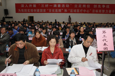 ? 11月18日下午,我院第四届教代会暨第五届工代会预备会在院工会大礼堂召开,来自我院医疗、教学、科研、管理、后勤服务等各个岗位十一个部门工会的258名正式代表参加了会议,院党委书记韦俊荣、院长贺西京、党委副书记巩守平、工会主席黎一鸣在主席台就坐。院工会主席黎一鸣主持会议。