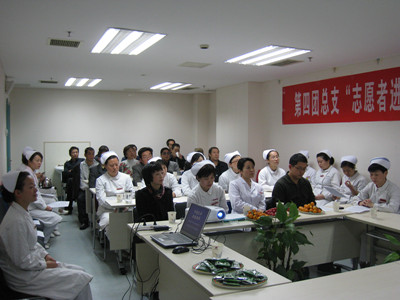 ? 为了更好的推进“三好一满意”及“优质护理服务”活动,我院第四团总支积极响应我院团委“志愿者进病房”活动的号召,在住院患者和工作量递增的情况下,坚持全面组织并连续开展了第四总支的“青年志愿者微力量”活动。继耳鼻咽喉病院团支部、中医皮肤团支部等开展的一系列活动后,11月24日下午我院第四团总支书记组织所在总支的七个科室志愿者,在耳鼻咽喉病院示教室举办第四团总支创建无烟医院知识交流会。