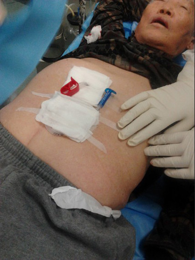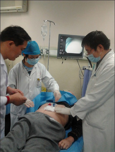 在消化科董蕾主任关心和指导下,消化科王进海教授,张利医师成功地给一位脑出血后吞咽困难的患者实施了经皮内镜下胃造瘘术。
