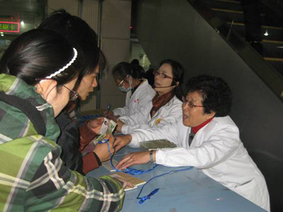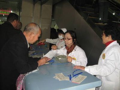 门诊部根据实际工作需要,招募了五名老年志愿者,并对她们进行了有序的培训和工作安排。培训后的志愿者统一身穿白大衣,胸前佩戴志愿者标识,她们既是患者的指引者,又是门诊大厅的巡逻员,每天都精神饱满地提前到岗,给许多来我院看病的人们提供帮助。