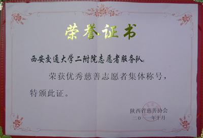10月23日---24日,陕西省慈善协会成立15周年纪念大会暨陕西省慈善协会第四届会员代表大会在西安隆重举行。陕西省委书记赵乐际、中华慈善总会副会长张道诚、陕西省省人大常委会副主任吴前进、副省长祝列克、省政协副主席李冬玉、省委秘书长魏民洲及省老领导安启元、李溪溥、刘维隆等出席大会。省委书记赵乐际作重要讲话,省慈善协会会长徐山林报告协会工作,与会领导向为陕西省慈善事业做出突出贡献的单位和个人颁奖。我院志愿者服务队荣获优秀慈善志愿者集体,朱建宏同志荣获优秀慈善志愿者先进个人,受到大会隆重表彰。