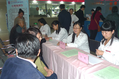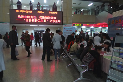 2011年10月10日是世界第二十个精神卫生日,我院心理精神科在综合大楼一楼门诊大厅举办了以“承担共同责任,促进精神健康”为主题的大型义诊活动。