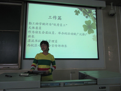 答辩会上,参加答辩的同学以PPT的形式,将自己从思想、学习、工作、生活等方面做了精彩的展示,总结了过去一年里学习和生活中的成长和收获,体现了新一代大学生的风采。这些同学们不仅在学习上取得了优异的成绩,更积极参加各类社会活动,提升了综合能力,多数同学还在班级中担任班委,为集体的进步贡献了不少的力量。优秀、丰富、充实、快乐,是对他们上一学年大学生活的最好的写照。