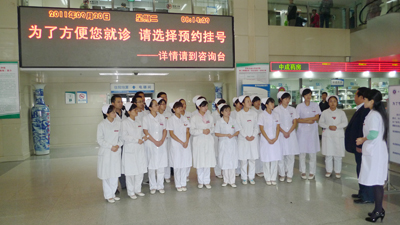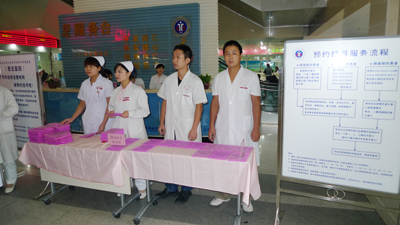 9月20日早上八点,院团委组织近30名志愿者在我院综合大楼门诊大厅以及各个病区、各个窗口进行预约挂号的宣传活动。