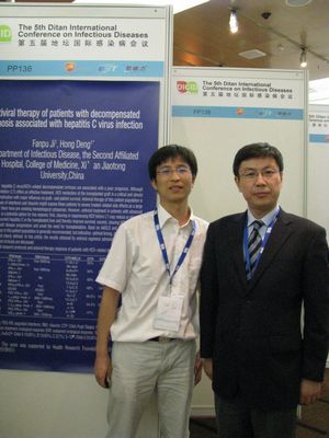 我院感染科纪泛扑医师主持的院医疗技术资助项目《普通干扰素联合利巴韦林治疗失代偿期丙肝肝硬化的临床研究》研究成果《Antiviral therapy of patients with decompensated cirrhosis associated with hepatitis C virus infection》近期在第5届地坛国际感染病年会上进入关注排行榜(http://bjditan2011.ihepa.com/55-489-4194.html)前五名,受到国内外专家的广泛关注和认可,进一步扩大了我院的知名度和在国内外的影响力。