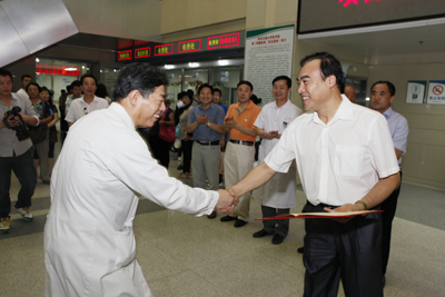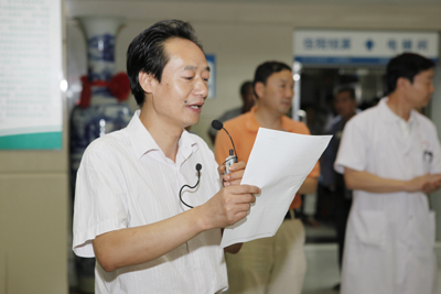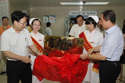 8月5日上午,“陕西省贫困聋儿抢救性康复人工耳蜗项目定点手术医院”揭牌仪式在我院门诊大楼前隆重举行。省残联党组书记、理事长高合元,省残联党组副书记、副理事长杨帆,省卫生厅医政处调研员任成旭,省残联办公室主任李文龙,省聋儿康复中心主任宋蕾,省残联康复部主任贾乃荣以及我院院长贺西京教授,副院长高亚教授等出席了揭牌仪式。揭牌仪式由医务部主任韩新生主持。