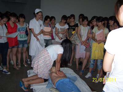 在整个培训过程中,老师们一丝不苟,精心准备,课件丰富多彩、图文并茂。急救及护理礼仪培训不但有讲座,还加入了情景录像、示范及训练。示范课上大家热情高涨,讨论热烈,对前辈们示范的护理技巧更是格外感兴趣并都赞叹不已。分享课上、几位优秀的护士老师们用自己的切身体会阐述了自己对于护理工作的感受和理解,用自己的成长经历讲述了如何成为一名优秀的护士。礼仪老师优美的仪态、优雅的行为、温馨的语言,让大家发出由衷的赞叹。急救课上,急诊科老师娴熟的手法和完美的配合搏得了大家阵阵的掌声。