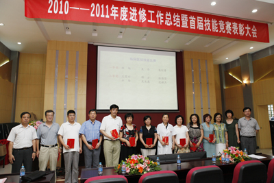 高亚副院长代表医院宣读了在2010-2011年度进修带教工作中涌现出的优秀管理、优秀带教老师及技能大赛获奖学员名单。本年度在全院范围内共产生优秀进修带教管理人员20名、优秀带教老师20名。技能大赛一等奖4名,二等奖9名,三等奖23名,纪念奖若干名。