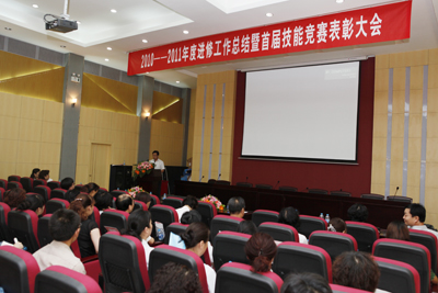 7月25日下午,教务部在工会多功能厅组织召开了我院2010-2011年度进修工作总结暨首届进修生技能大赛表彰大会。我院党委书记韦俊荣教授、副院长高亚教授、副院长刘原教授、谢丹总会计师、工会主席黎一鸣教授及职能科室领导出席大会,获奖教师代表、全体进修生等200余人参会。会议由教务部马肖容主任主持。