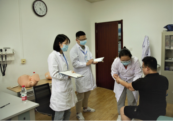本年度的考试仍沿用客观结构化临床考试(OSCE)的模式,采用多站并行,合理疏导,考场井然有序。各位考官以饱满的热情和严谨的态度,认真执行了监考工作;技能中心工作人员全员在岗,协调各项工作;聘请的标准化病人和查体志愿者也积极配合,保证了考试的顺利进行。