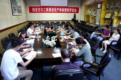 7月8日下午,西安市清洁生产指导中心刘珍祥主任、市环保局赵学功处长、环保新城分局吴欣昕科长一行来我院就清洁生产审核绩效进行评估。我院李文典副院长、后勤服务中心晁玥主任及我院清洁生产领导小组成员参加了评估会。