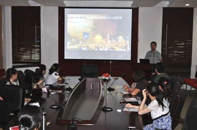为了宣传消防安全理念,普及消防安全常识,在我院保卫科协助下,2011年7月18日上午10时,科研实验中心在会议室举行了主题为“消防安全,由你开始”的消防安全知识讲座。讲座由袁国莲副主任主持,邀请西安市消防中心张春光讲师主讲。科研实验中心李可主任、相关工作人员及部分本院研究生参加了此次讲座。