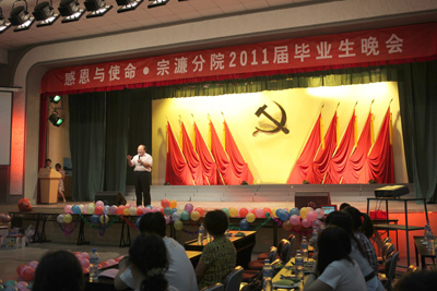 ? 7月4日晚,宗濂分院在二院工会大礼堂隆重举行“感恩与使命?宗濂分院毕业生晚会”,向即将踏上新的征程的同学们送去深深的祝福,让同学们在此时此刻诉说对母校的眷恋与不舍,牢记那些感恩的时光与明天的使命,为毕业生的大学时光留下最后最美好的记忆。出席本次晚会的领导有西安交通大学校长助理宫辉博士、校学生处长徐文雄教授、校团委徐永胜书记、宗濂书院院务主任王宏武老师、院务副主任康杰老师、院长助理陈勇老师、启德书院院务副主任李新安老师、第二附属医院党委书记韦俊荣教授、院长贺西京教授、副院长刘原教授、口腔医院副院长侯铁舟教授、宗濂分院院务主任巩守平教授、院务副主任李刚教授以及来自党政、临床科室的主任30余人。