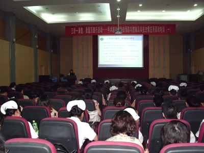 2011年6月15日下午4时,由感染管理科组织的“三好一满意服务、质量万里行---手术部位感染预防与控制及其抗生素的应用原则”培训在南院多功能厅进行,培训由高亚副院长主持,李金娜主任主讲,我院手术科室及相关科室的170名医护人员参加了此次培训。