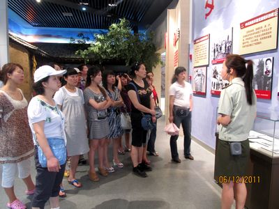 结束对薛家寨的参观后,我们来到了陕甘边照金革命根据地纪念馆。照金革命根据地在我国革命史上具有重要地位和意义,素有“南有瑞金--北有照金”之称。在纪念馆工作人员的带领和讲解下,大家认真听取讲解,参观展品、展板,更加深刻地了解了渭北革命史以及渭北人民为中国革命所作出的贡献。一件件珍贵而简陋的文物,一桩桩感人的革命事迹,真实记录了渭北广大人民群众及先烈们为了新中国而革命的艰辛历程,体现了我们党艰苦奋斗、甘于奉献、不畏牺牲的革命精神,参观者无不为之感动。