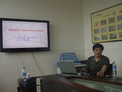 本次培训医生、护士分2个场地进行。医生培训活动由普外支部组织安排,先后由纪宗正教授、黎一鸣教授分别就 “肝、胆、胰疾病诊治进展”和“微创技术在普通外科的应用”进行了专题讲座。并在两位专家的主持下与当地医生就许多临床问题展开了互动讨论。最后由吉鸿副教授将我院开展腹腔镜结直肠手术的体会做了汇报讲演。活动中,汉滨区医院的正、副院长,党委成员,外科、内科、影像科领导及医生40余人认真聆听讲座,积极参加互动,热烈探讨临床问题。