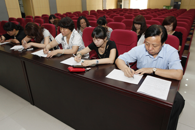 5月11日上午,机关一支部在多功能厅举行了纪念建党90周年党史知识答题学习活动,院党委书记韦俊荣和支部其他党员一起参加了答题学习,活动由支部书记文博荣主持。