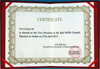 2011年4月27日至30日,第四届年会国际神经修复学会在约旦王国首都安曼召开,我院院长贺西京教授在大会上作了题为《嗅鞘细胞移植治疗脊髓损伤的临床中期报告》的大会发言,引起了来自世界各地神经修复专家的极大关注,在此之前,只有英国学者在动物实验上取得成功,而贺西京教授在报告中提出嗅鞘细胞是人体中唯一能够不停生长的神经,可利用嗅鞘细胞的移植,用于治疗修复高位截瘫病人受损的神经。经过5年临床的观察,该探索实践被证实有效,使得截瘫病人的感觉平面下降,肌肉力量有所增加,痉挛强度降低,痉挛时间间隔延长,在临床治疗的30余例脊髓损伤患者的实践中,有50%患者获得成功,多数患者功能得到改善。贺西京教授利用嗅鞘细胞进行中枢神经修复的临床实践已被会议专家认定为处于国际领先水平。贺西京教授在会上当选为该学会副主任委员,会议同时决定第五届年会将于2013年在西安召开,贺西京教授为下届年会的执行主席。