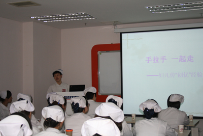 赵艳护士长做了题为“手拉手?一起走”妇儿传创优经验交流动员报告,就一年来妇产科创优工作体会及感触与大家进行了分享,并深情并茂地讲述了妇产科创优工作中感人事例,激发了妇儿传全体护士的创优激情。妇产科护士郑彩霞进行了“护患沟通技巧”方面的经验交流,主要就一年来创优工作中自身与患者的沟通体会进行了总结,她将患者分为三类(优秀患者、普通患者、问题患者),针对不同患者人群采用不同的沟通技巧,达到良好的沟通效果,尤其针对问题患者通过举例深入浅出地展示了她独特的沟通技巧,最后她谈到:只有充分掌握了不同的沟通技巧,因人而异,视情而定,巧妙、灵活地采用不同的护患沟通技巧,根据不同患者人群运用最妥善合适的沟通方式,与她们进行有效的沟通,及时全面了解她们的需求,才能为她们提供优质的护理服务,同时也能融洽护患关系,提高患者的满意度。儿科护士王莉还向大家展示了在澳洲医院学习的见闻,使大家开阔了眼界。