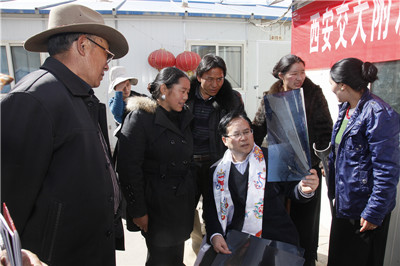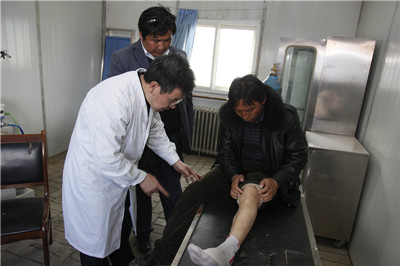 简短的见面后,在县医院的小院子里,院长贺西京教授、副书记巩守平教授及骨二科主任李浩鹏教授分别为康复伤员检查身体,并为今后的康复治疗提出建议。在玉树县医院就诊的部分患者听说有西安交大二附院的专家在义诊也都赶了过来,三位教授在翻译的协助下,耐心解答在场的每一位患者的咨询,并将价值3000多元的骨病和皮肤病用药送给伤员。玉树县卫生局仁增财旺局长在现场讲到此次回访活动体现了西安交大二附院对玉树藏族同胞真诚的帮助和无限的爱意,对二附院为藏族同胞的送医送药行为表示由衷地感谢。
