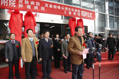 闫剑群副校长在讲话中对我院皮肤病院、耳鼻咽喉头颈外科病院、肿瘤病院、儿童病院的成立表示热烈的祝贺!高度评价我院各项工作并提出了新的希望和要求。