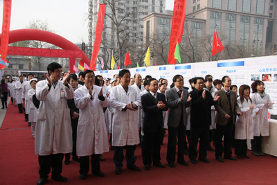 揭牌仪式后,我院组织四个病院的20位专家教授在医疗综合楼前进行了义诊,为前来就诊、咨询的患者检查诊治、答疑解惑。截至中午12点,共接待、诊治患者200余人。