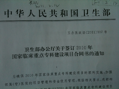 ——恭贺我院三个专业荣膺2010年国家首批临床重点专科殊荣