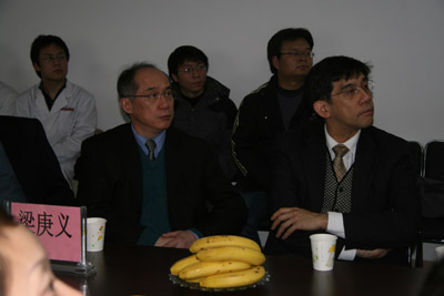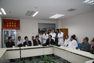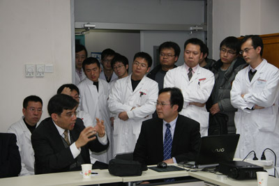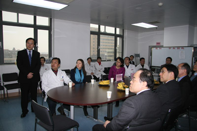贺院长向客人介绍了我院的发展历程、近年来取得的成绩及今后发展的方向,并重点介绍了我院骨科在医、教、研等方面所获得的成就。梁庚义校长介绍了阳明大学的情况,希望借助光华基金加强双方在人才培养、科学研究、医学发展等方面的合作。会后,梁校长一行来到骨科教研室,听取了王伟、杨佩、樊立宏、刘瑞宇等医师的工作汇报,并围绕骨科学今后的发展方向、最新治疗技术在临床上的应用等问题和在场医务人员、博士研究生进行了交流与探讨。