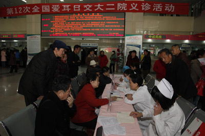 为贯彻落实卫生部、中国残联等15个部委联合下发的《关于开展第十二次全国“爱耳日”宣传教育活动的通知》精神,根据省卫生厅、省残联统一安排部署,由我院耳鼻咽喉头颈外科、门诊办、宣传部联合组织,3月3日上午,耳鼻咽喉头颈外科的专家兵分两路,分别在我院门诊大厅及新城广场举办了“爱耳日”大型义诊、咨询、宣传活动。