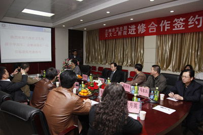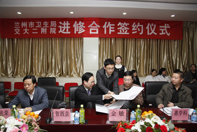 贺西京院长和金敏副局长分别代表我院和兰州市卫生局签订了医务人员进修学习合作协议书。会后各位专家参观了我院相关科室,就进修细节进行沟通。