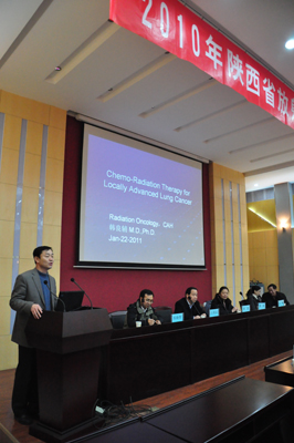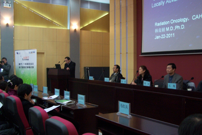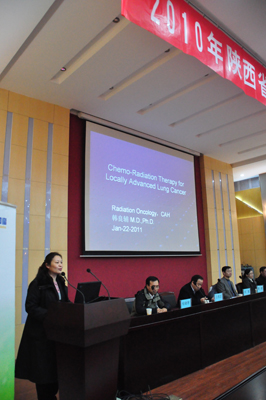 刘孜教授致开幕词;高亚副院长讲话,对我院承办的此次会议表示祝贺;刘孜教授就我省一年来放疗学会的工作做了总结报告,并与到会的放疗学会成员共同制定了2011年的工作计划。