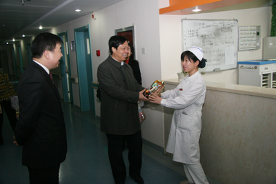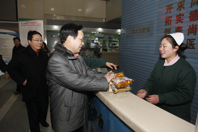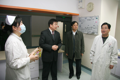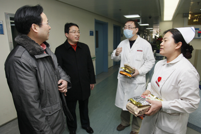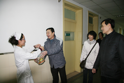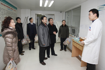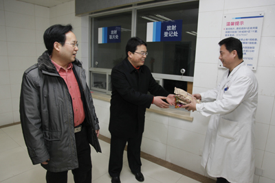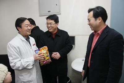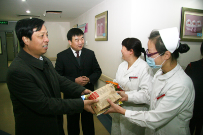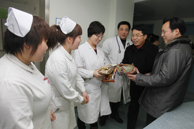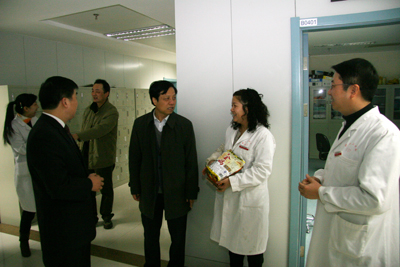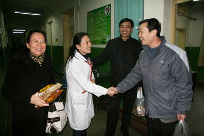 红梅迎雪放,玉兔踏春来。2月2日农历除夕上午,我院党政领导韦俊荣、贺西京、李宗芳、李文典、高亚、刘原、巩守平、谢丹及工会主席黎一鸣带领医院党政职能科室负责人,第一时间将新春祝福送到节日值班人员身边。慰问组分四个小组,分别到工作在第一线的临床医技科室、党政后勤科室和班组,向他们送去全院教职工崇高的敬意和节日的问候,祝他们节日愉快、全家幸福,并对其家属们给予医院工作的大力支持表示最衷心的感谢。(张军科文 刘铨 张雷 兰璐 赵珊图)