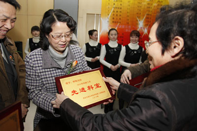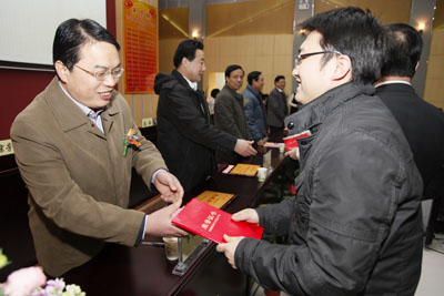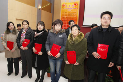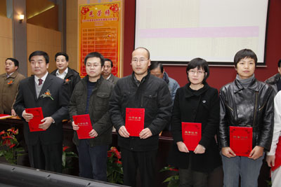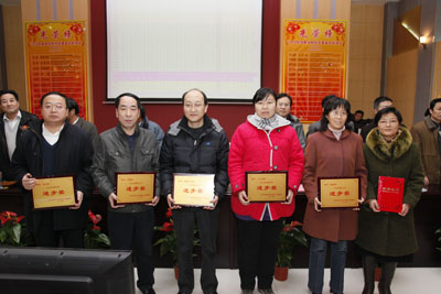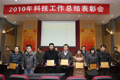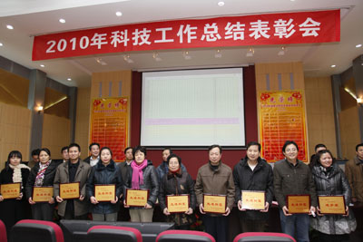 韦俊荣书记宣读获奖科技人员名单,由到会领导分别为我院2010年度第三届“十大科技新星”、科研先进集体科室、科研工作进步奖科室、SCI论文发表作者、实现SCI零突破的科室和绩效评估前10名的受表彰人员颁奖并合影留念。