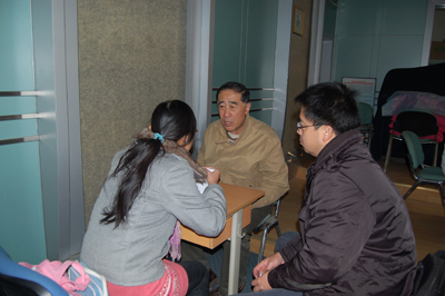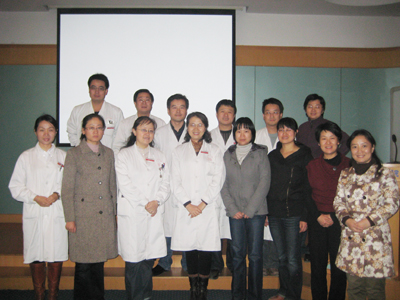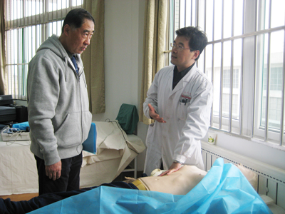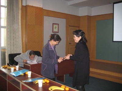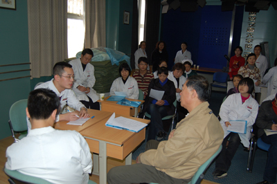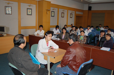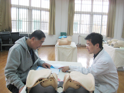 本次标准化病人培训工作属于校光华基金专项教改项目,在培训过程中,首先成立了我院SP建设团队、培训教师团队、指导教师团队和管理团队,总人数35人组成.9名SP人员来自我院行政管理、退休干部、临床科室的护理人员,经过遴选并聘任为我院标准化病人教学工作者,他们分别是:冯育德、杨杰、费娟、王宝娜、张海英、王庆林、刘茘纺、刘大棉、薛超。整个培训过程中,他们的热情、认真、投入、敬业精神,让大家深受感动!培训教师团队14名教师均为各学科系的教学骨干,分别是马建仓、徐思越、陈琦、李萍、赵文学、周戬平、尉春燕、高登峰、赵平、和平、张春虹、葛衡、张桂莲、周芙玲。指导教师团队6名教师为张巧俊、何爱丽、王玉环、肖延风、曹罡、段钊,他们均参加了2003年的国际医学教育对我校评估的全过程,积累了丰富的OSCE临床工作经验。管理团队由我院教学副院长刘原教授总负责、教务部马肖容、徐孝军2名主任直接管理和参与、王玲珠、马盼进行各项工作的具体落实与实施。团队成立之后,教务部组织大家完成了脚本撰写、SP培训和评估工作。第一阶段是14名培训教师撰写的脚本初稿,经过6名指导教师的多次修改、审定等步骤,最终确定了问诊和查体脚本15个,覆盖本科生重点技能掌握的14个临床专业。第二阶段进行的是脚本-SP-培训教师-指导教师一对一培训,对练反馈,反复指导,情景模拟,学生演练。整个培训过程中,大家积极性非常高,除了我们集中的培训之外,大家利用工作之余,在办公室、在家中进行互相演练,很快熟悉和掌握了脚本情况,为顺利通过考核打下了坚实的基础。